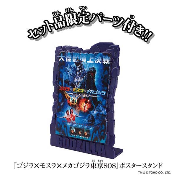 セット品限定のスペシャルアイテムとして、『ゴジラ×モスラ×メカゴジラ 東京SOS』の映画ポスターをデザインしたポスタースタンドが付属します。