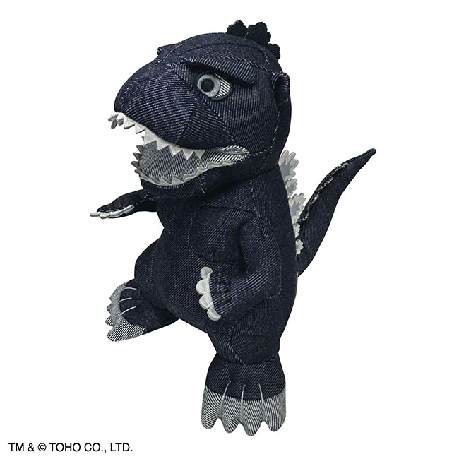 インテリアとしてもおしゃれなデニム地のゴジラのぬいぐるみです。