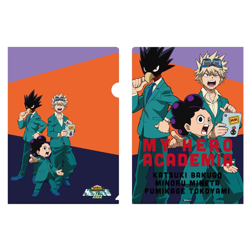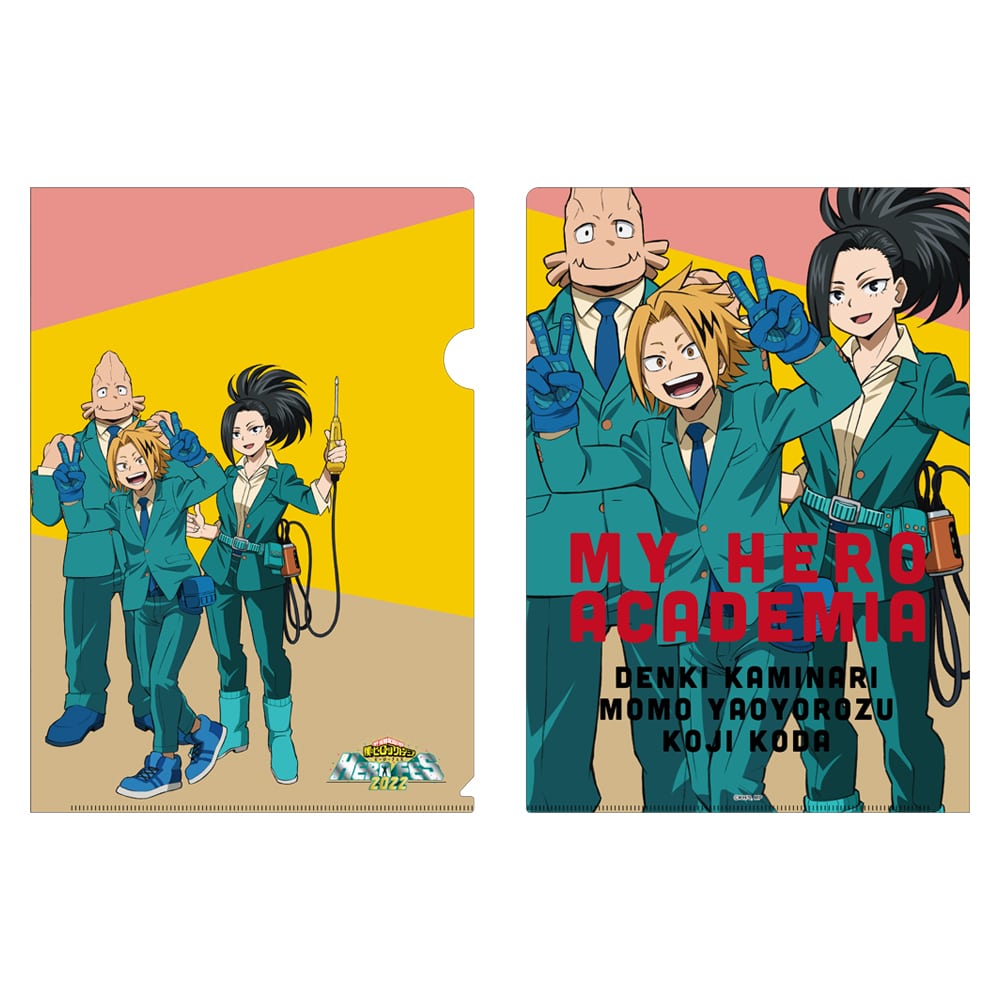 イベント用描き下ろしイラストを使用したクリアファイルBでは「爆豪勝己、峰田 実、常闇踏陰」「八百万 百、上鳴電気、口田甲司」を2種セットにしてお届けいたします。