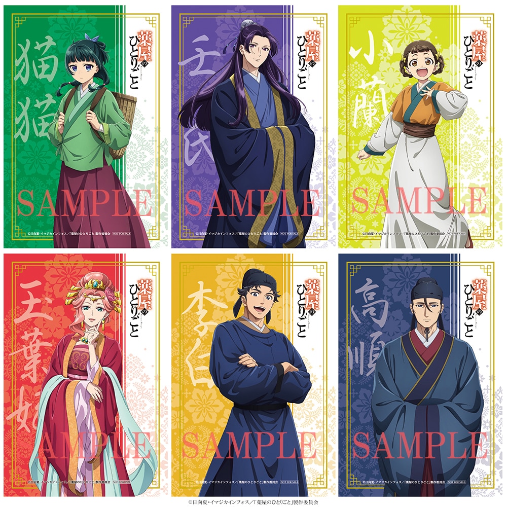 絵柄は「猫猫、壬氏、高順、玉葉妃、小蘭、李白」の全6種となります。