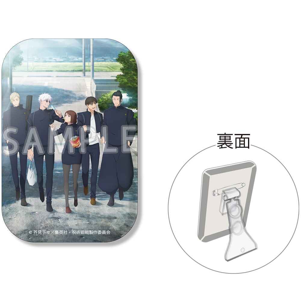 TVアニメ『呪術廻戦』第2期「懐玉・玉折」より、高専時代の五条 悟、夏油 傑、家入硝子、七海建人、灰原 雄の描きおろしビジュアルを使用した、スタンド付きスクエア缶バッジが登場!