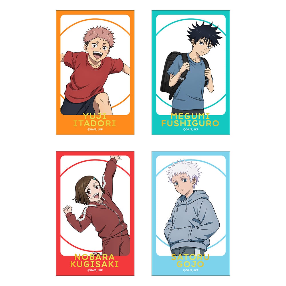 「虎杖悠仁(幼少期)、伏黒 恵(幼少期)、釘崎野薔薇(幼少期)、五条 悟(幼少期)」の4枚セットをご用意しました。