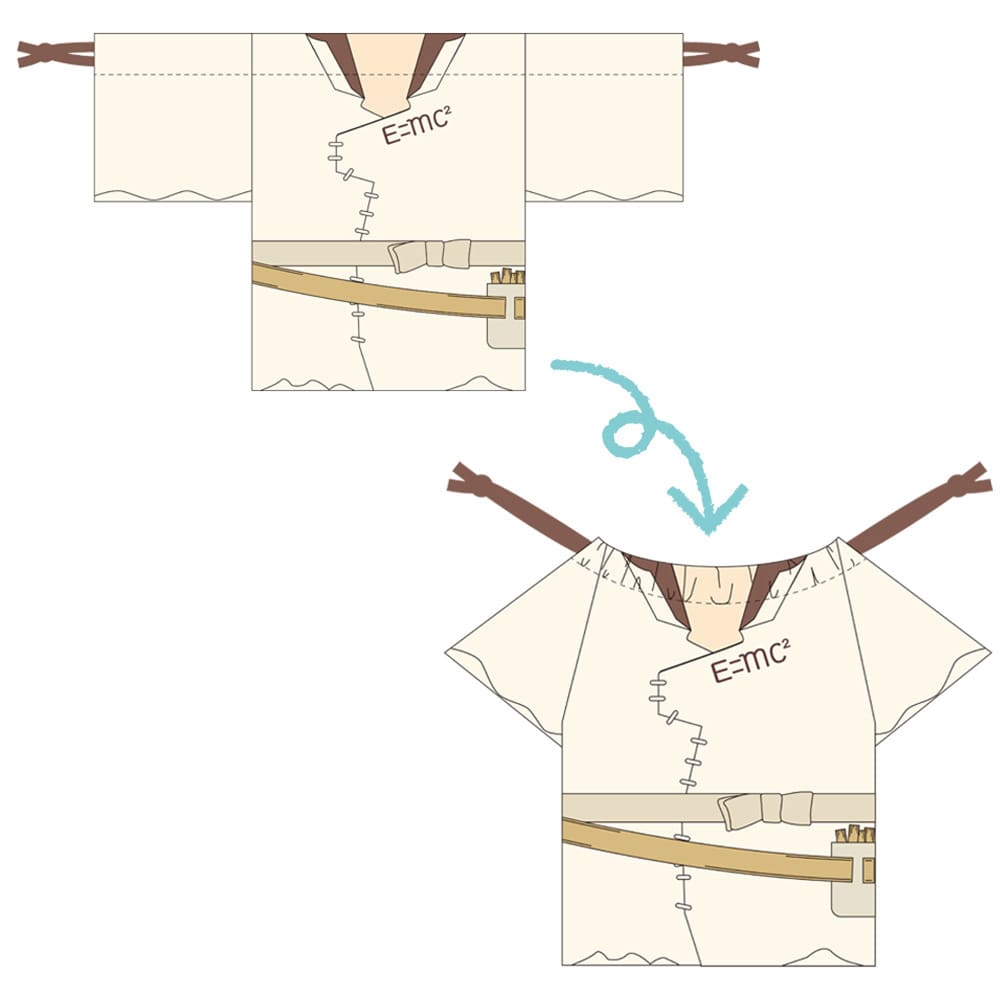 キャラクターの衣装をイメージした「お洋服巾着」が登場!口を絞ると、よりお洋服に近い形になります。