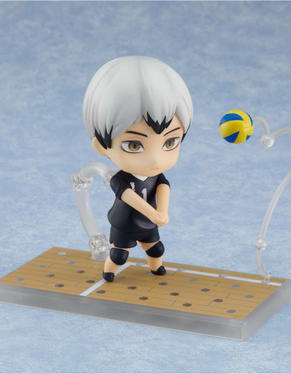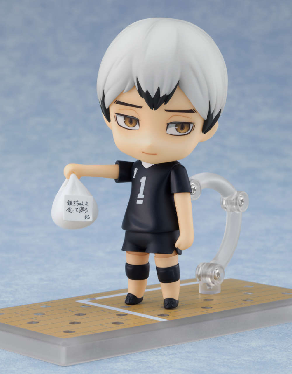 交換用表情パーツは「通常顔、ジト顔、笑顔」の3種類。オプションパーツには「バレーボール」「コートをイメージした専用台座」に加え、「羽織ジャージ」「稲荷崎高校男子バレーボール部応援旗」「差し入れ(メッセージ付き)」と、稲荷崎高校男子バレーボール部主将・北を象徴する各種アイテムをご用意。作中の様々なシーンをイメージ・再現してお楽しみください!