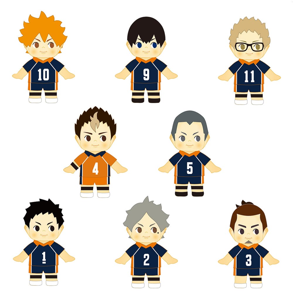 アニメ「ハイキュー!!」×「コスチュームキューピー」より、ユニフォームを着た烏野高校「日向翔陽、影山飛雄、月島 蛍、西谷 夕、田中龍之介、澤村大地、菅原孝支、東峰 旭」をTOHO animation STOREにてお取り扱い!