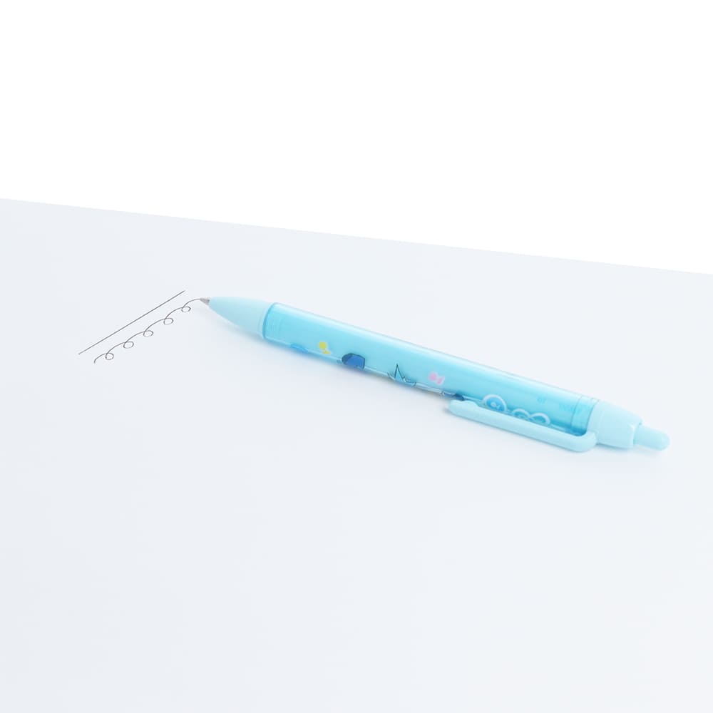 クリアな二重軸タイプのボールペンです。