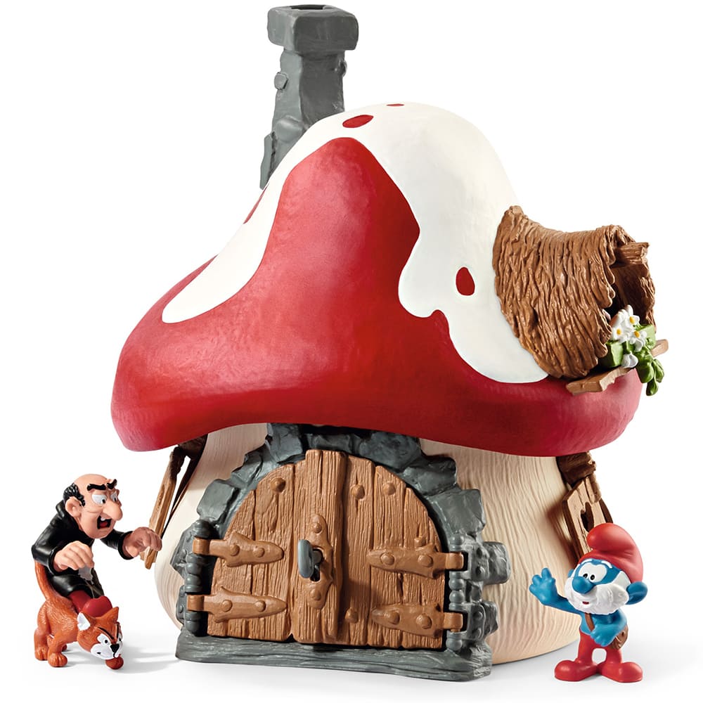 おおきなスマーフのおうち、パパスマーフ、ガーガメルとねこのアズラエルが入っています。