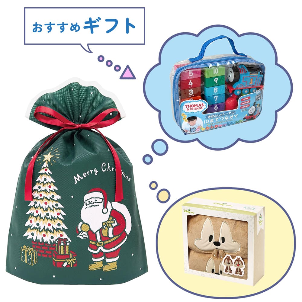 ギフトを届けるサンタさんが描かれたクリスマスらしいギフトバッグです。