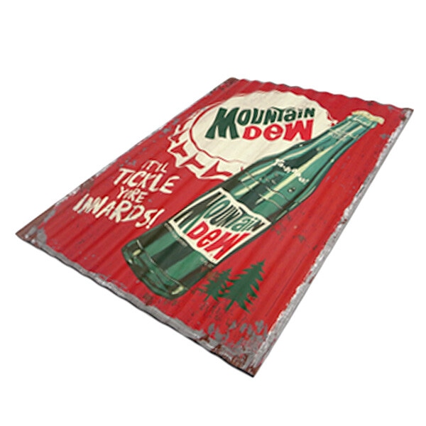 とたん板のようなナミナミの形状と材質のMOUNTAIN DEW マウンテンデューのコルゲートメタルサインです。