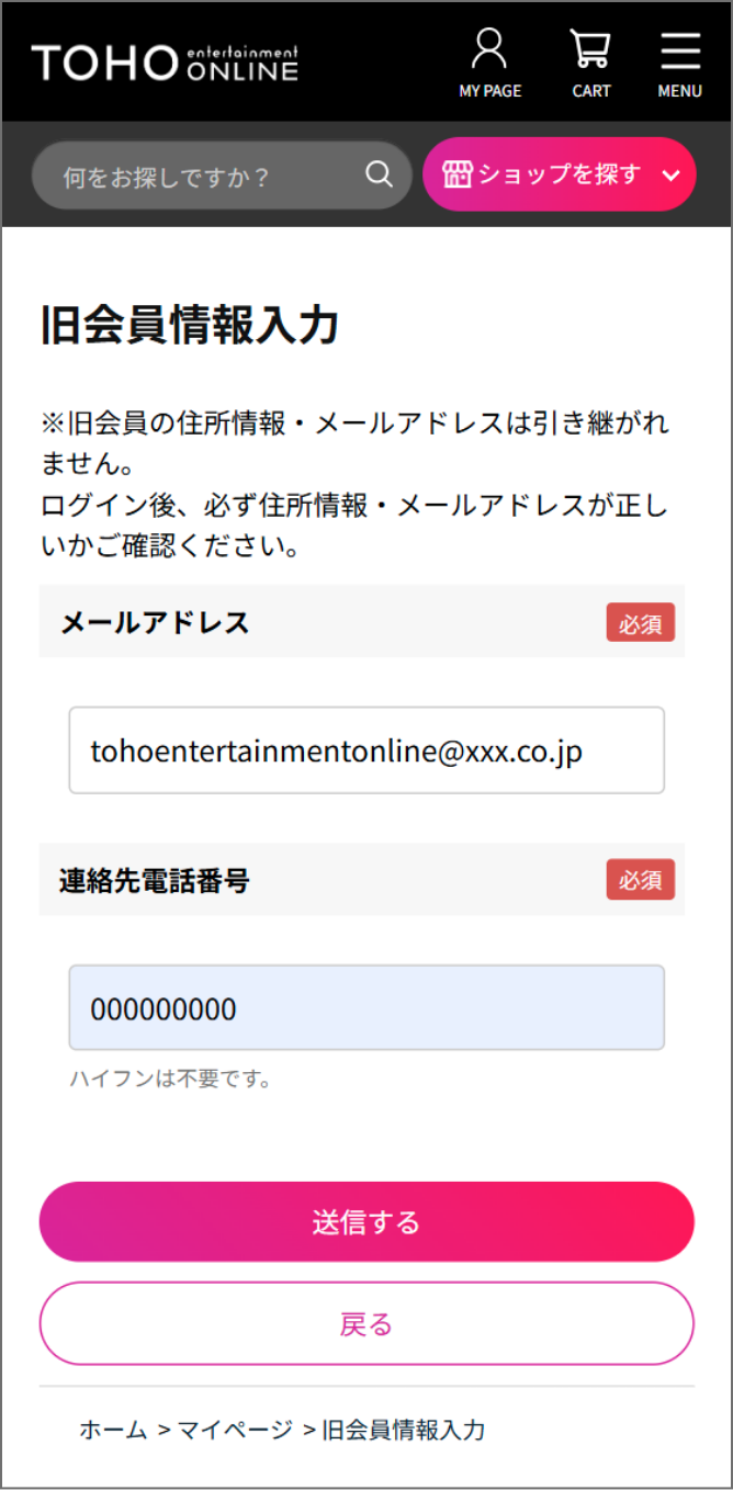 ※TOHO entertainment ONLINEへの移行をしない場合、3月2日以前のTOHO entertainment ONLINEの情報は引き継がれません。